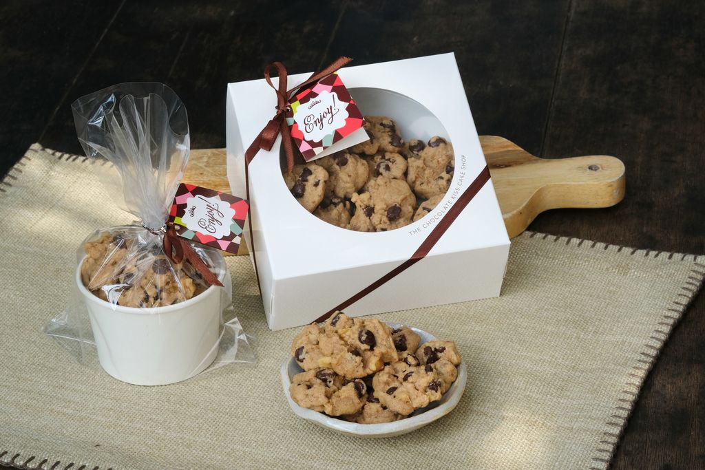Mixed with Hershey's chocolate chips and chopped walnuts. Comes in half-pound box or Goodie Cups (12 pieces/cup, order by dozen cups).